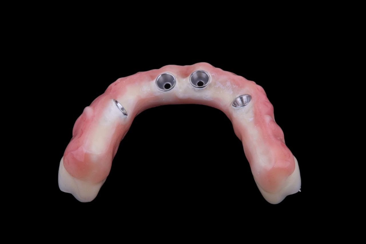 Еще один случай не соосно, хаотично, расположенных имплантатов. И вновь выручает каркас из ПИИКА (РЕЕК) БиоХПП (ВіоНРР) Бредент/bredent. Индивидуализация Креа лайн (Crea Lign) bredent.